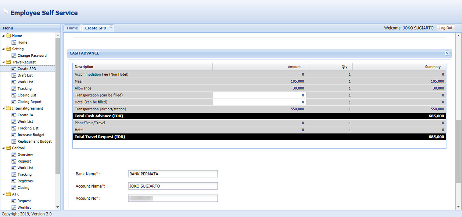 - Employee Self Service (ESS)